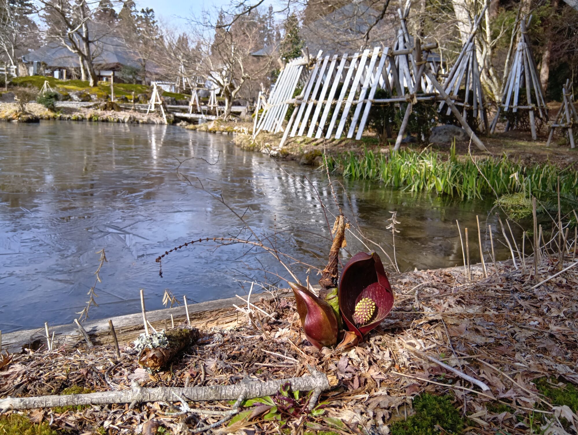 願成寺に春を呼ぶザゼンソウ