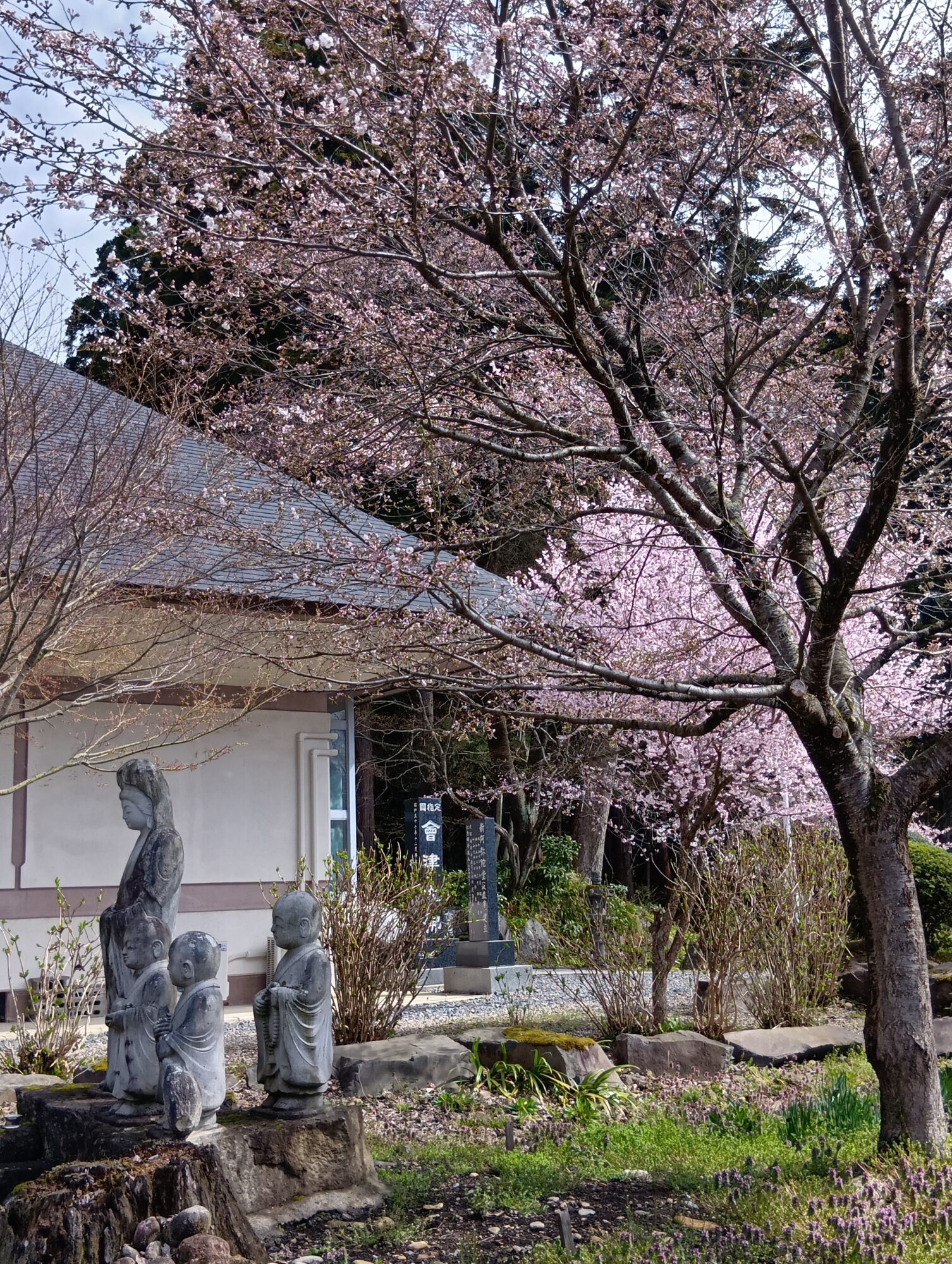 阿弥陀堂脇の観音さまと小坊主くん達