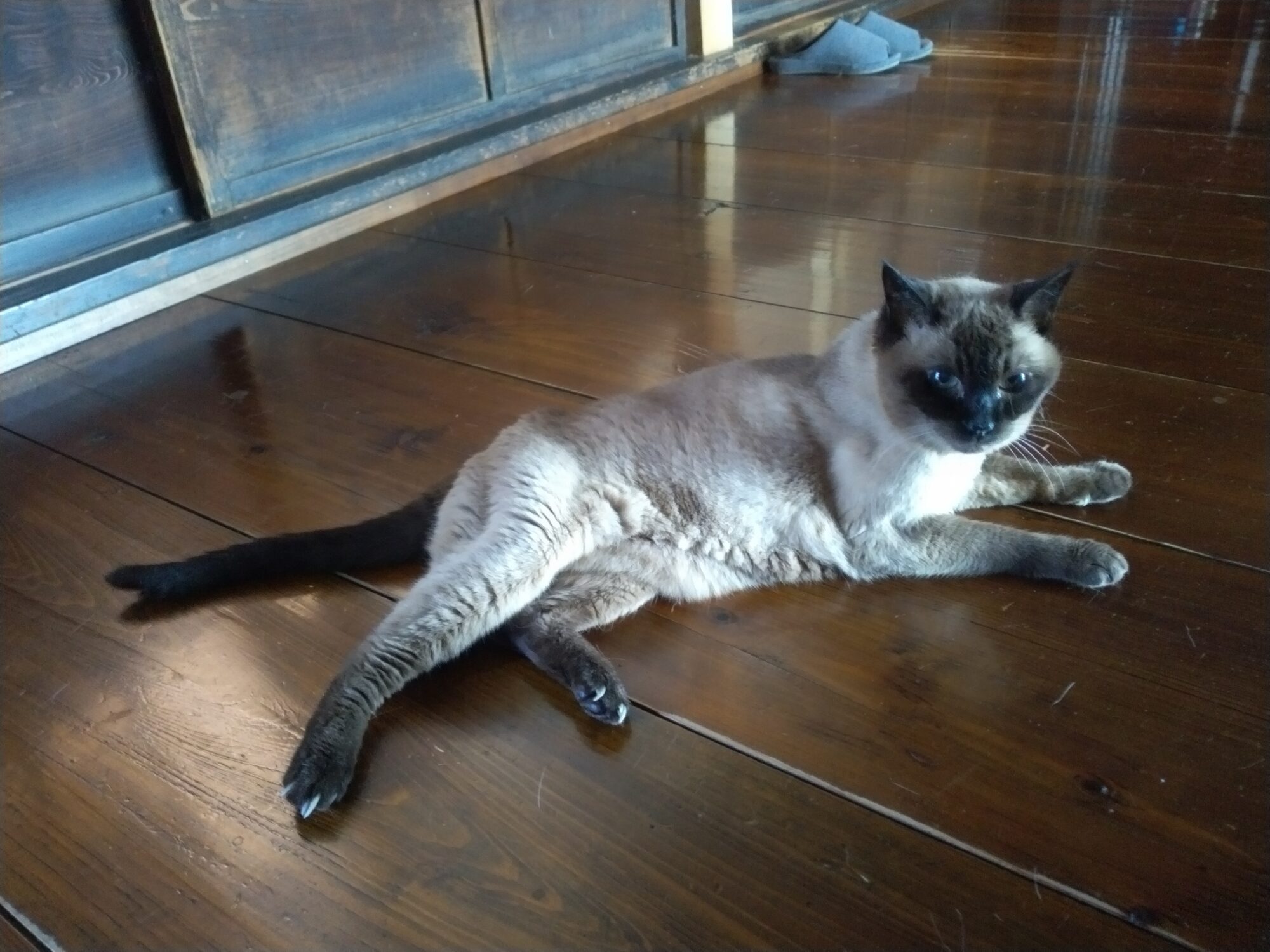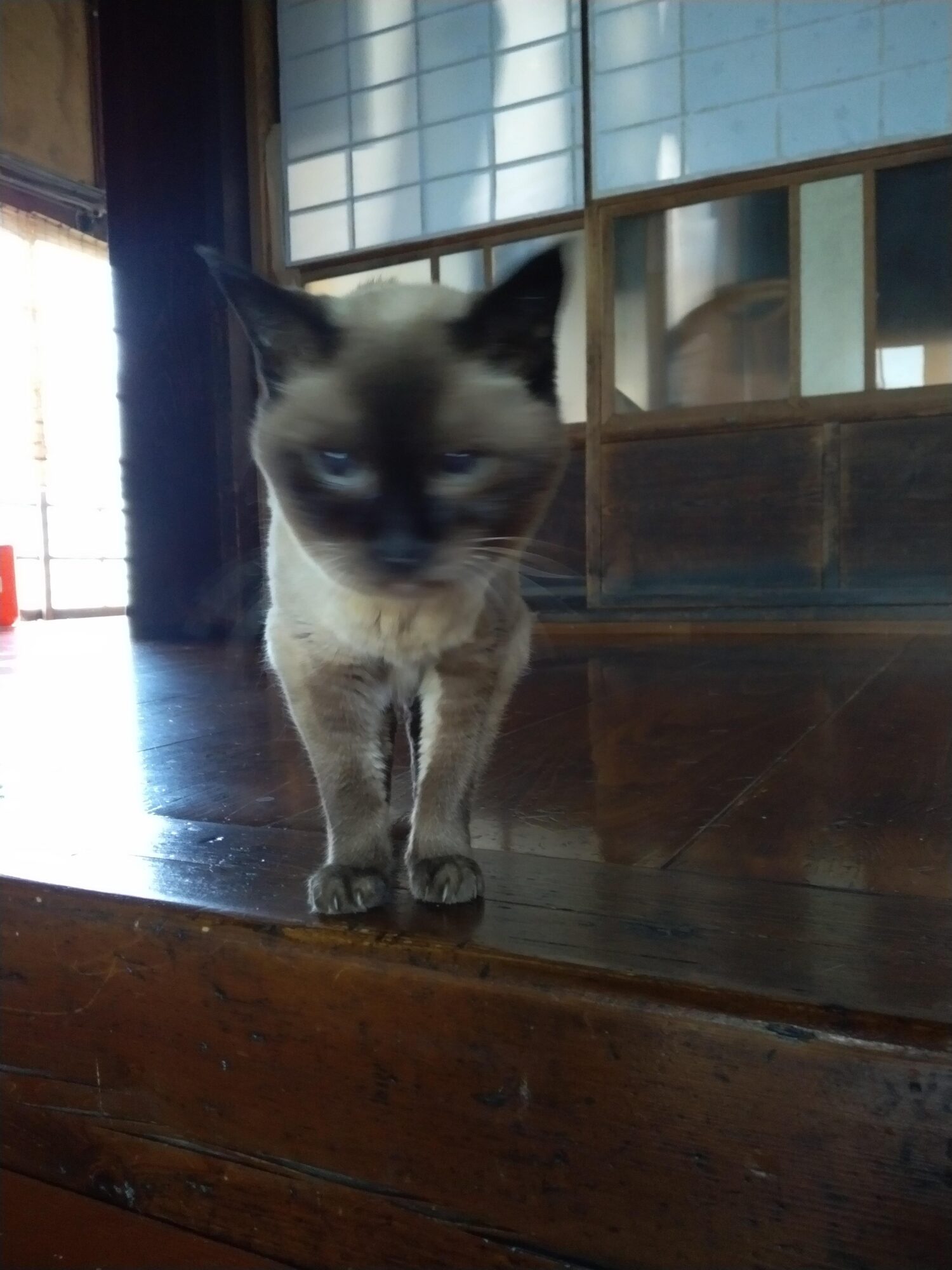 お勤めから庫裡に戻る先代を待っているところ🎵
