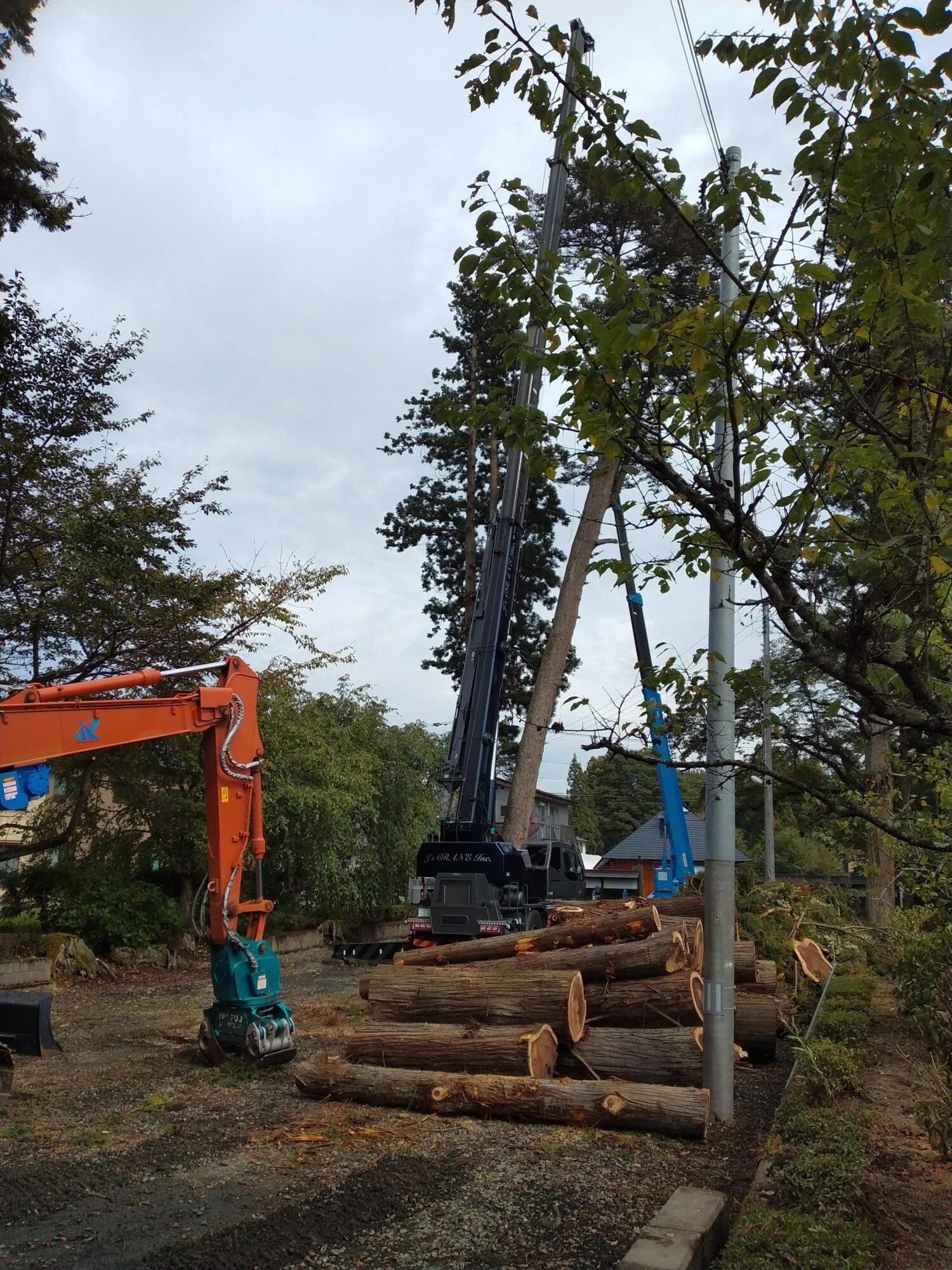 午後イチから、斜めに生えていたモミの木伐採が始まりました。