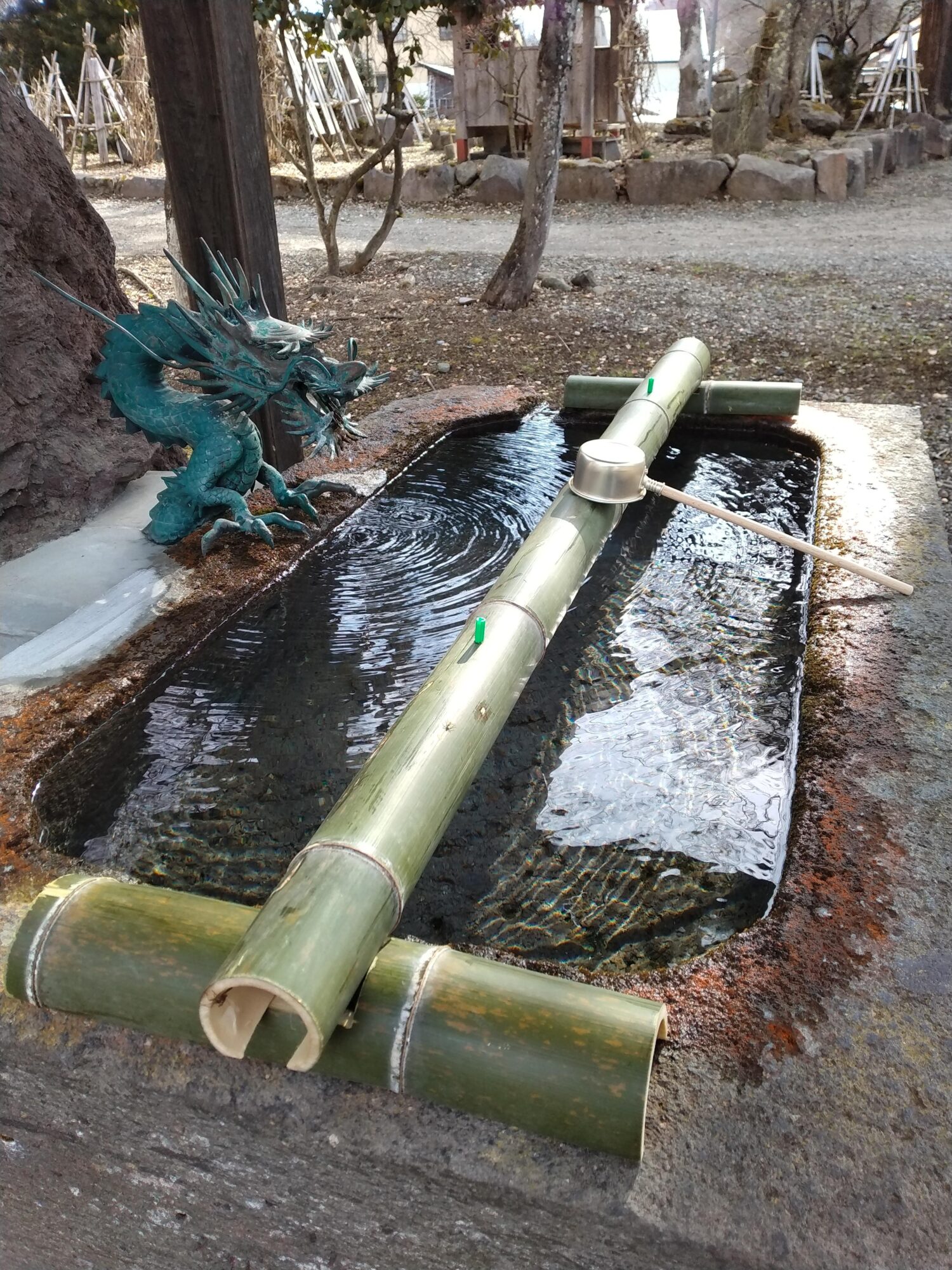 手水舎✨ 2023年3月16日 自宅の竹林から切り出して 毎年ひしゃく置きを 作って下さるお檀家さん😄 『夜も寝ないで昼寝して、作ったんだよ。』 ひょいとした瞬間に ユーモアたっぷりなことをおっしゃる素敵な方なんですよ🎶 (せっかく設置して頂いたのに手配が遅れ、ひしゃくがまだ一本💦 やらかしてしまいました🙇👀💦)