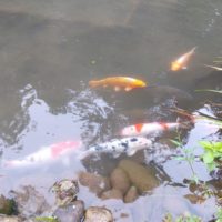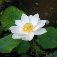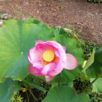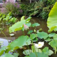ゆらゆらと揺れる大きな葉の間から覗いて
