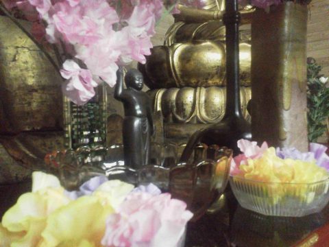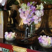 阿弥陀堂内に色とりどりのお花でアーチを作り、お釈迦様をお迎えしてのお誕生日会。