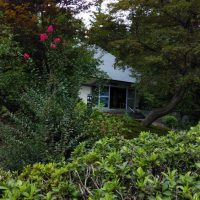 心字池を見て、左に曲がる角の少し内側に、咲き残った百日紅と、今が盛りと匂い立つ金木犀がお出迎え。